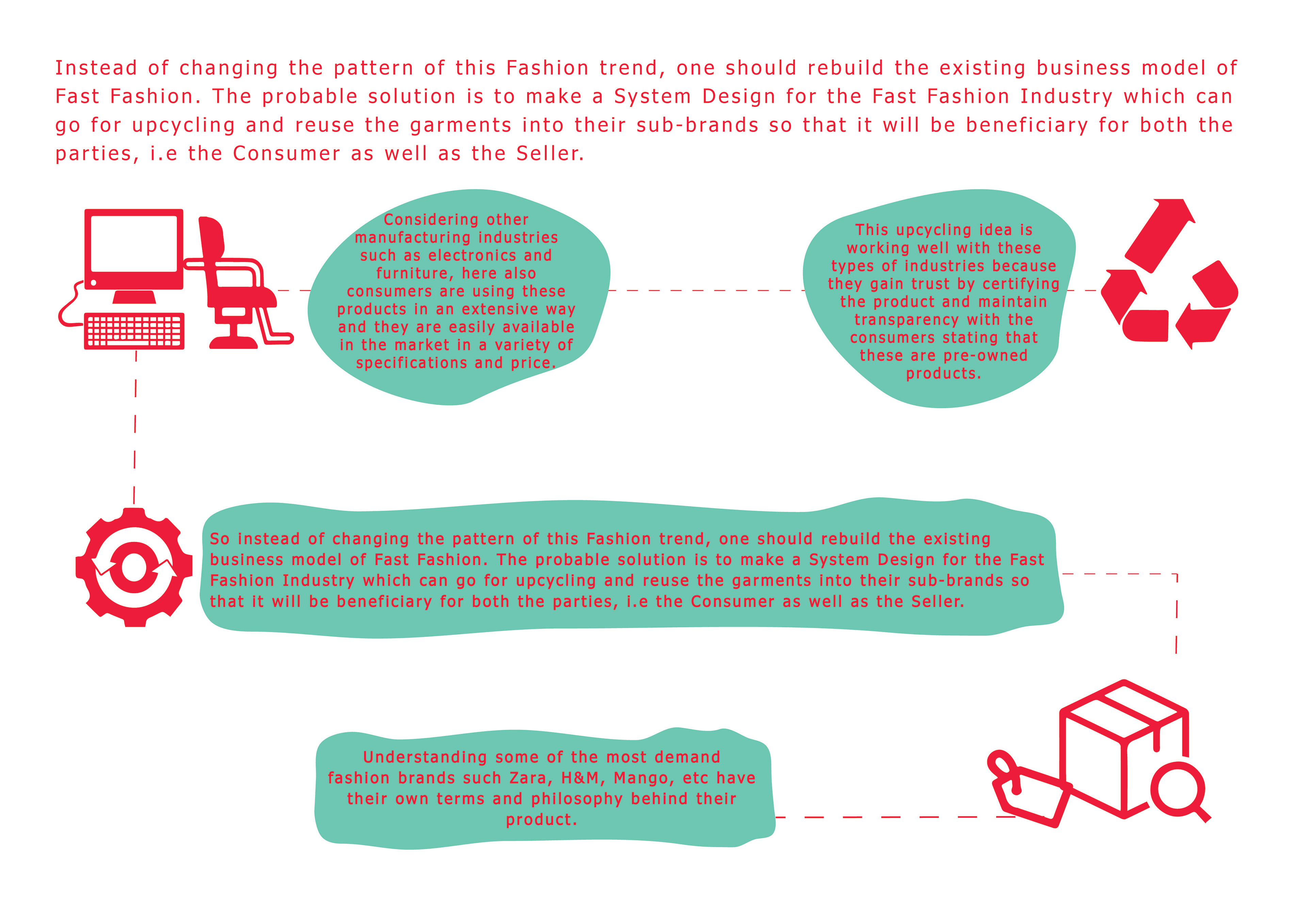 Since it is not possible to completely eradicate this fashion era, this project focuses on intervening the FAST FASHION Industry which can be changed at a system level in order to contribute to the society in a healthy way.